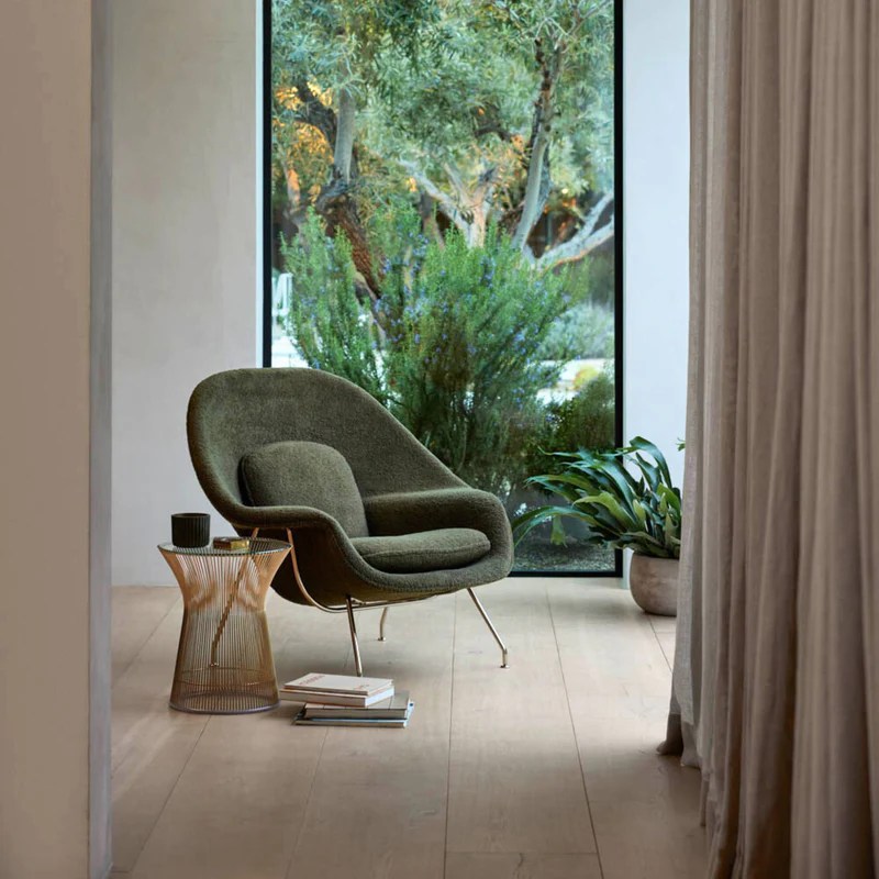 A “bouclé” jelentése franciául “göndör” vagy “hurkolt”, ami a szövetre utal. Egy szőtt anyagról van szó, amely csomózott kötéssel készül leggyakrabban gyapjúból, de kombinálhatják pamuttal, selyemmel vagy lenvászonnal is. Az anyag gyártása időigényes, de megéri a fáradtságot, hiszen egy egészen különleges és strapabíró anyag jön létre. A buklé először a divat világában jelent meg Coco Chanelnek köszönhetően, az általa tervezett kosztümök, kabátok vagy szoknyák egy idő után már nem csak tweed anyagból, hanem bukléból is készültek. És innen már csak egy lépés volt, hogy a lakberendezés világát is meghódítsa ez az anyag. A legelső és leghíresebb bútordarab, amit bukléval vontak be az Eero Saarinen tervező által készített Womb Chair volt.