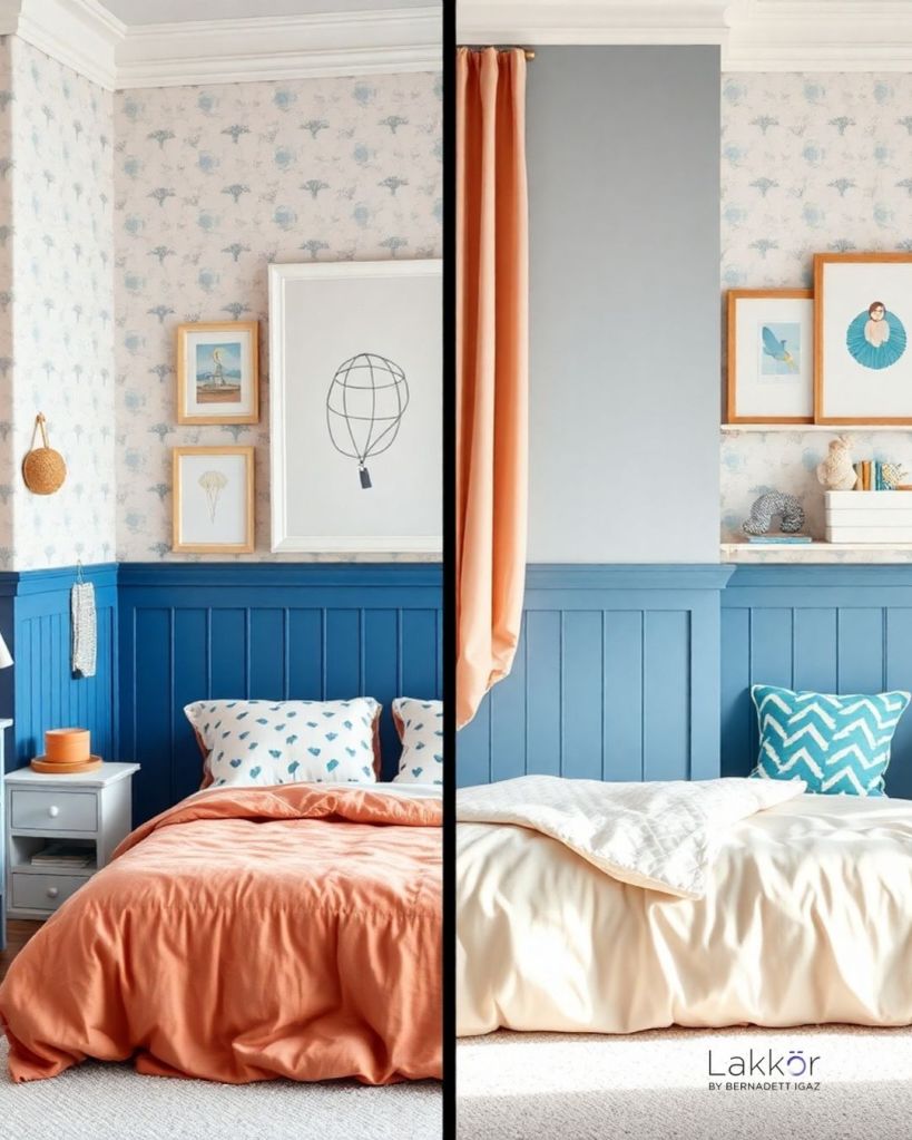 Ha például két gyerekszobát is berendezel, ne másold le őket egymásról teljesen. Használd ugyanazt a színpalettát, de más-más mintákat, elrendezést vagy textúrákat alkalmazz az enteriőrökben.